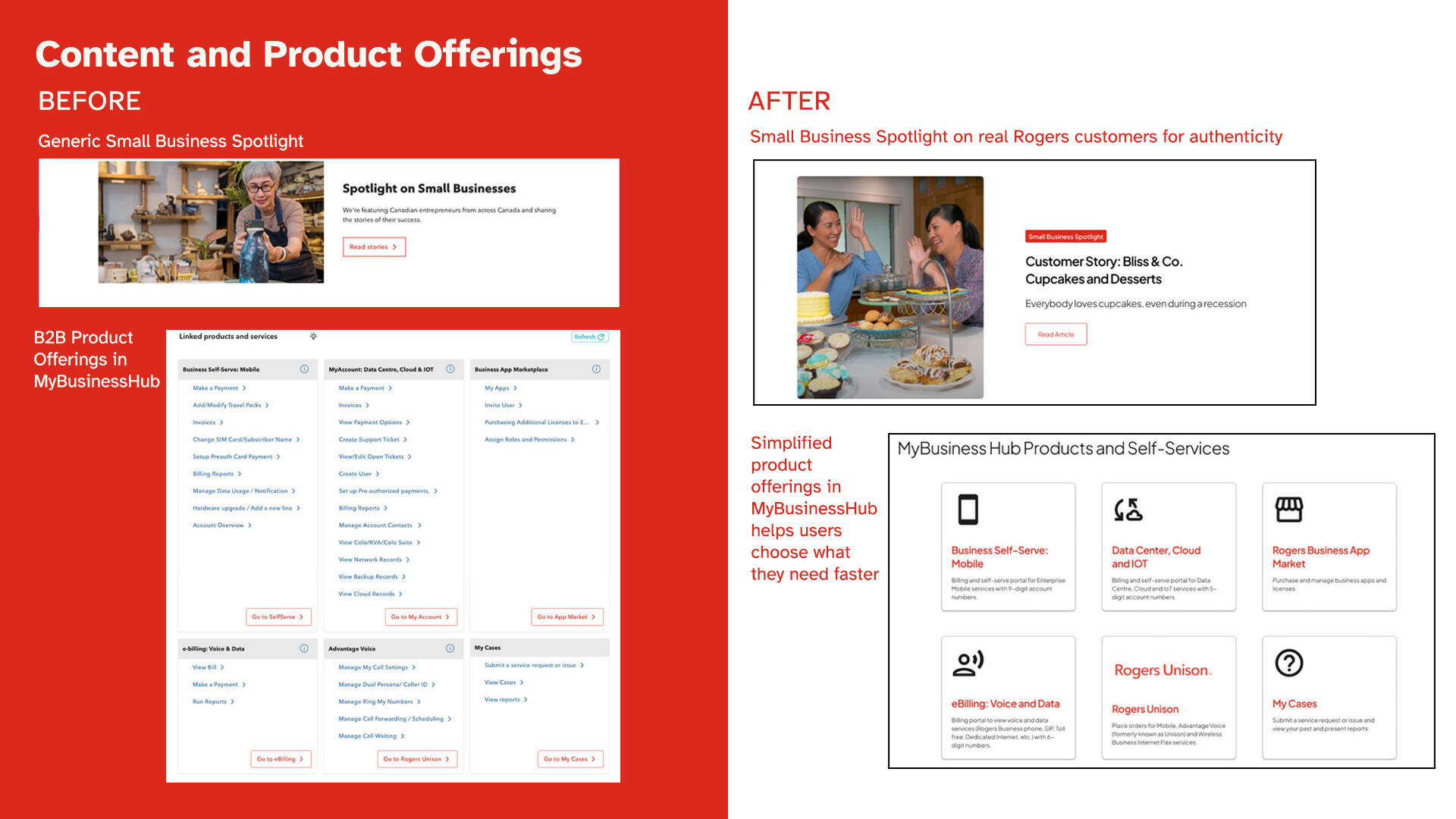 Despite Rogers being a household name in Canada, their business product dashboards and portals did not reflect this. Key issues found during the experience audit included: